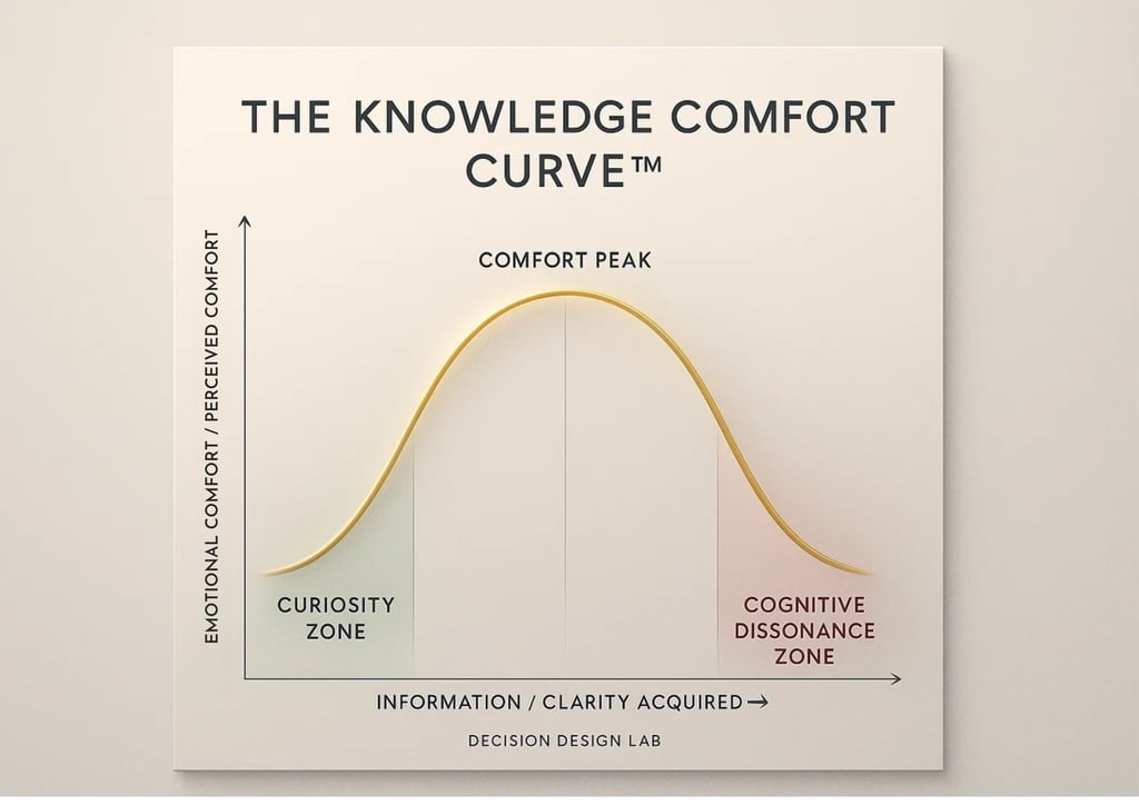 This paper introduces the Knowledge Comfort Curve™ (KCC). A novel framework developed under Decision Design Lab to quantify the relationship between cognitive clarity and emotional comfort in decision-making.